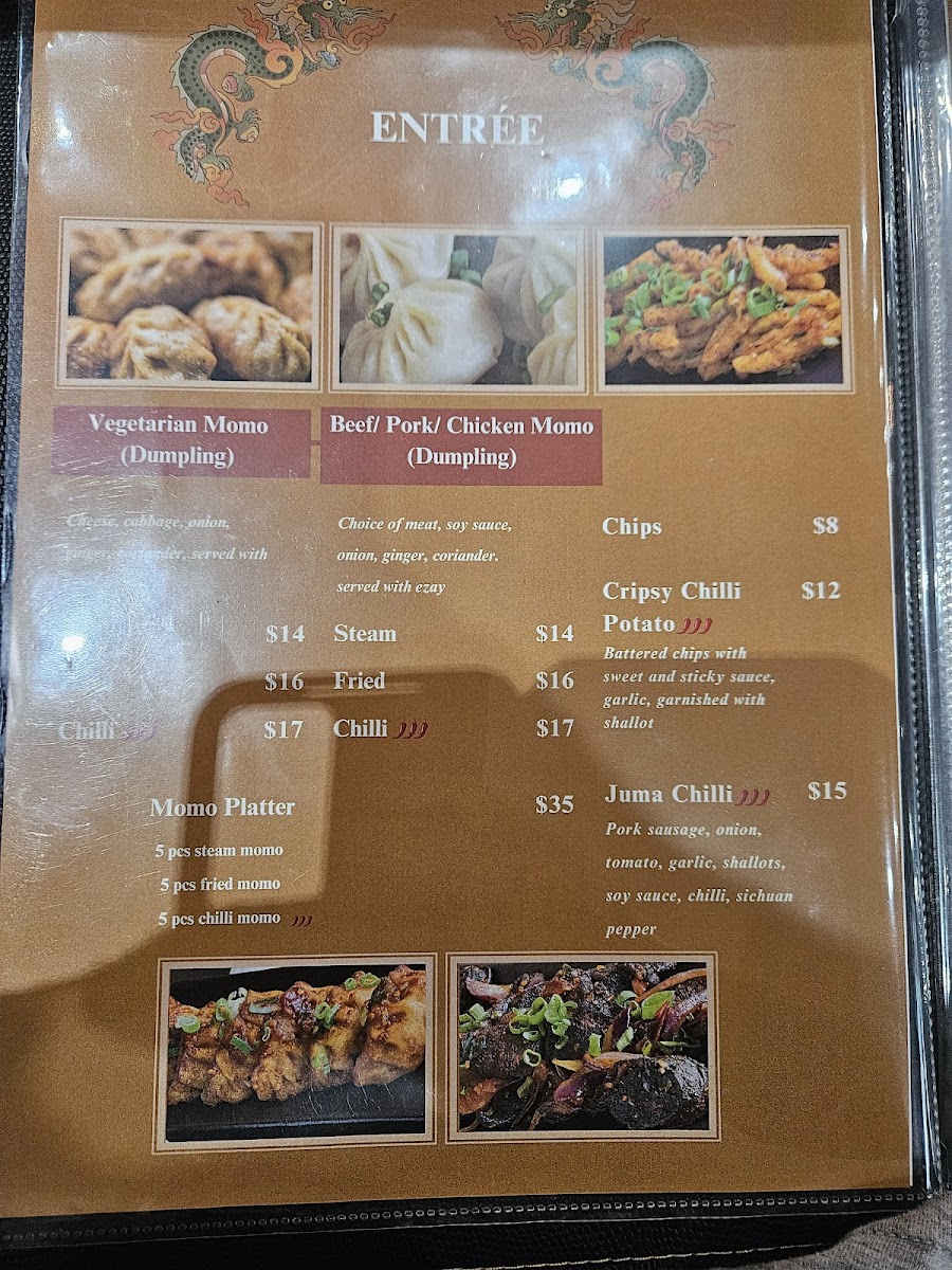 The menu at The Druk Family Restaurant offers a delightful range of dishes that reflect the rich and vibrant flavors of Bhutanese cuisine. Starting with the appetizers, the Crispy Potato Chilli and Jumma Chilli are a perfect introduction to the meal. The Crispy Potato Chilli is a tantalizing mix of crispy potatoes tossed in a flavorful chilli sauce, while the Jumma Chilli brings a spicy, tangy kick, ideal for those who enjoy bold flavors. For a comforting start, their Cheese Momo is a must-try, with soft, cheesy dumplings that melt in your mouth.