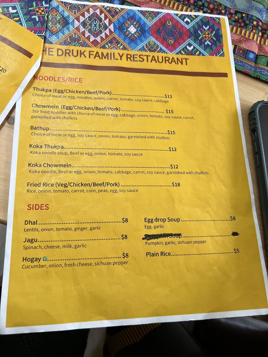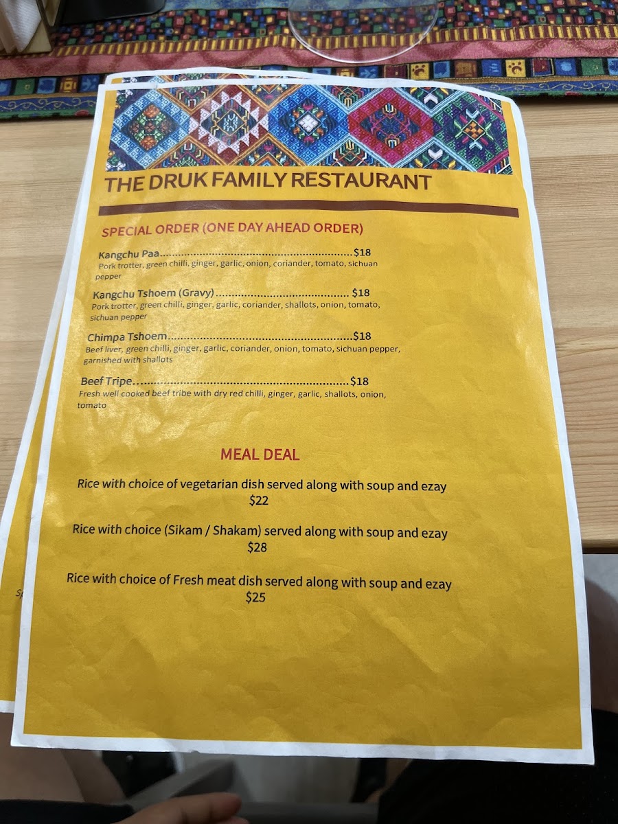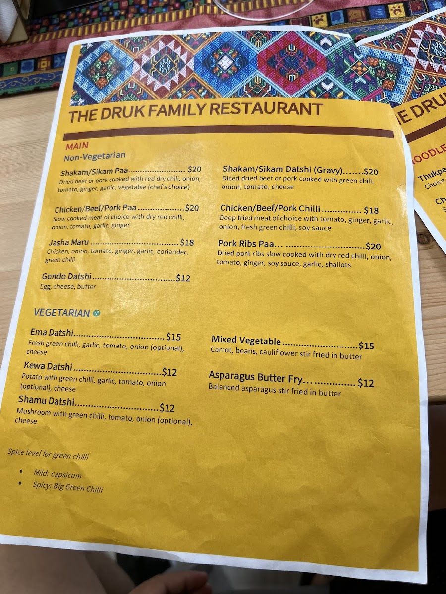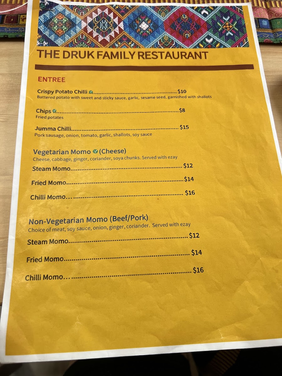 While specific prices aren't listed here, the dishes are reasonably priced for the quality and authenticity they offer. Whether you're a first-time visitor or a regular, the Druk Family Restaurant provides a welcoming atmosphere and an extensive menu that will leave you coming back for more.